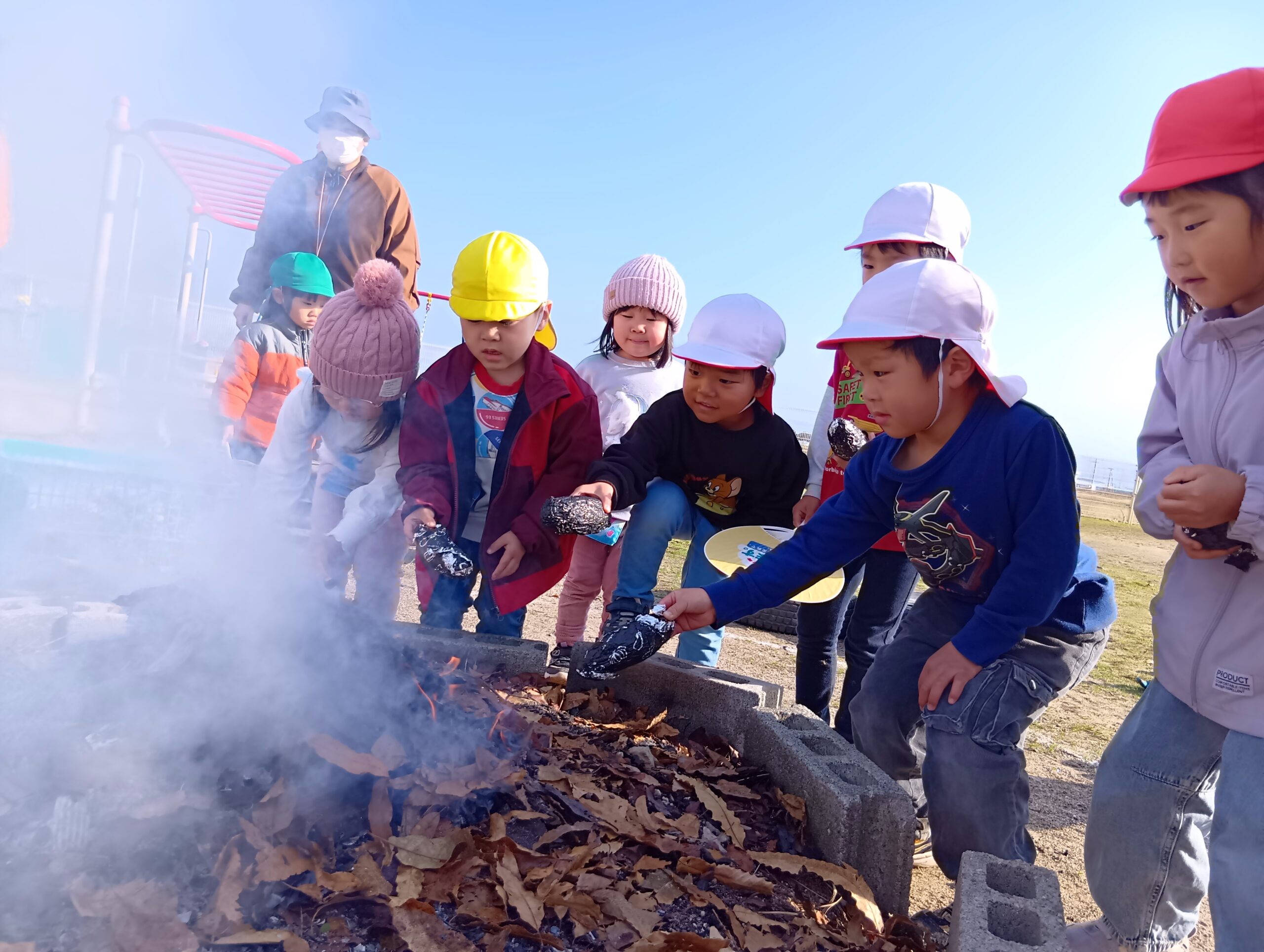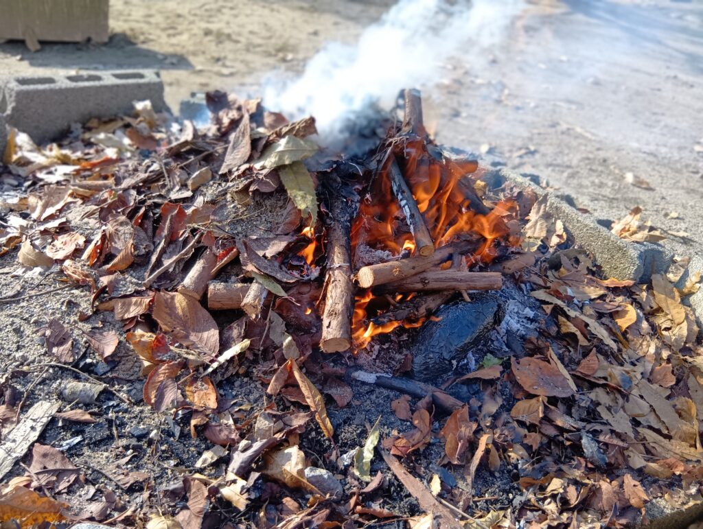 落ち葉がぱちぱちと燃える音… 煙の香り… 肌寒いお庭に、あたたかな空気が広がります。